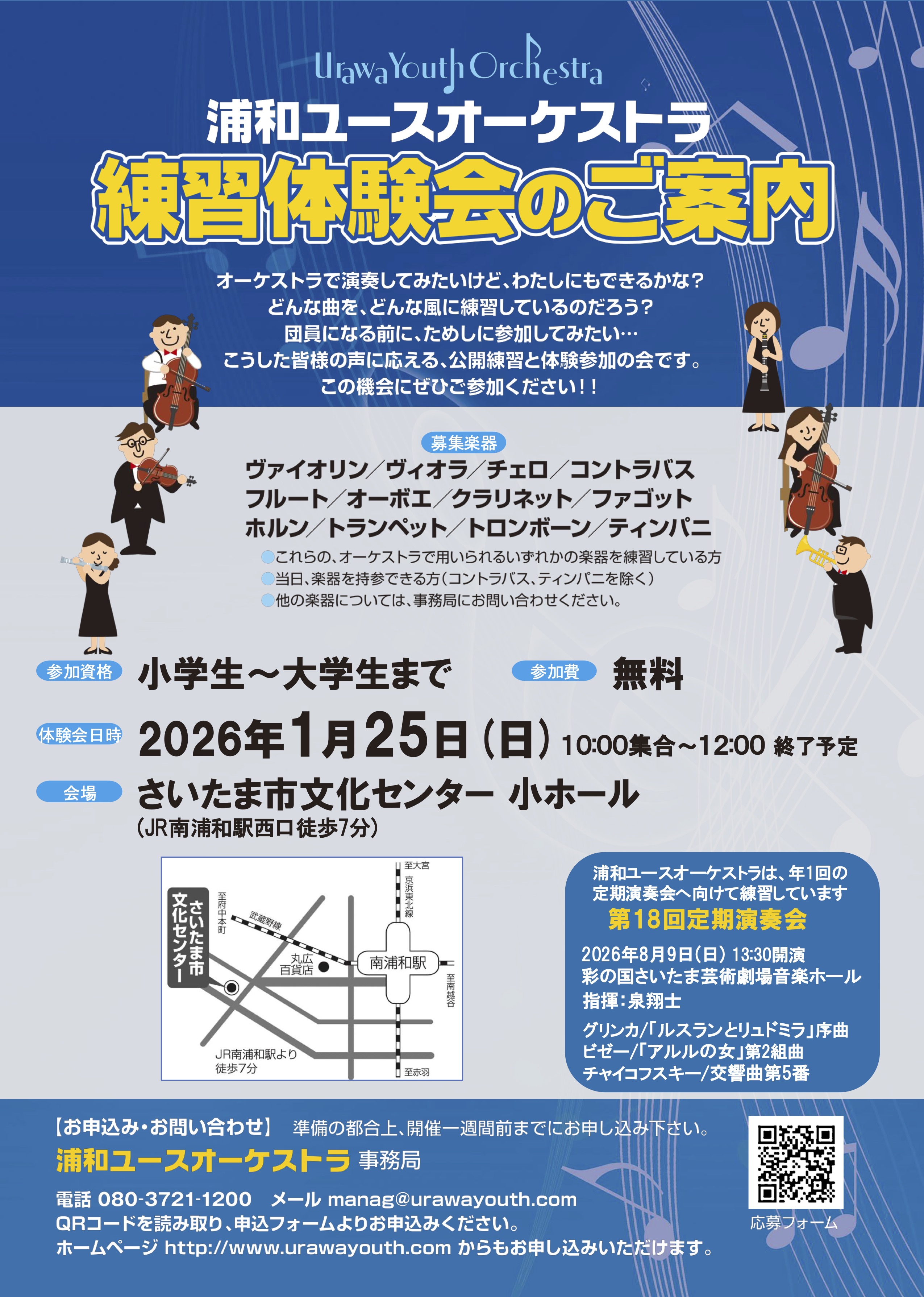 日々の活動状況を浦和ユースオーケストラ 公式ブログに綴っていますので、そちらもご覧ください。